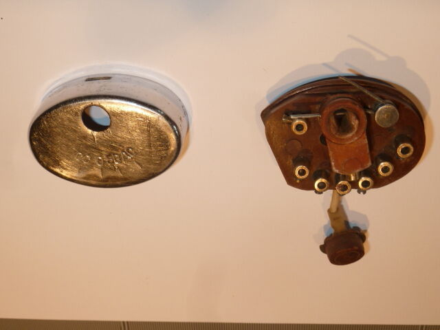 schön ersichtlich, bei gezogenen Zündschlüssel hätte die Bügelfeder mit dem linken Kontakt und dem Lichtschaltergehäuse (Masse) Verbindung und somit Motor aus.