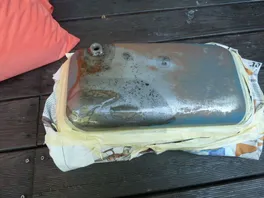 Tank wurde mit Pelox an der Unterseite entrostest und auch an den Lochränder im Inneren des Tankes, danach sauber und ordentlich