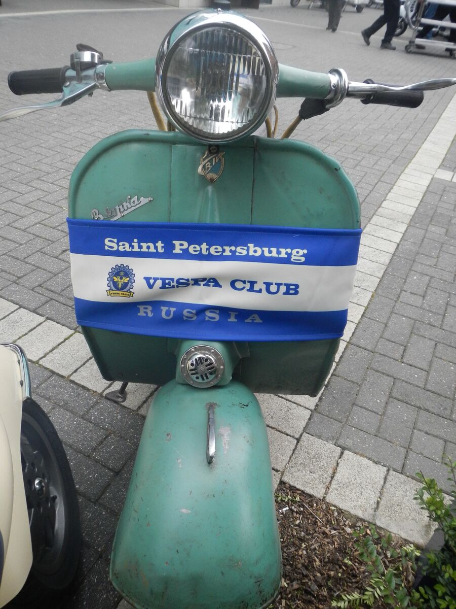 Der auf den Bildern abgebildete St. Petersburgroller / Vjatka mit PX Motor und Gabel ist NICHT meiner. Das Bild entstand bei den Vespa Wourld Days in London wo der St. Petersburg Club angereist ist. Sie sind mit 4 Automaten und die Vajtaka gekommen.