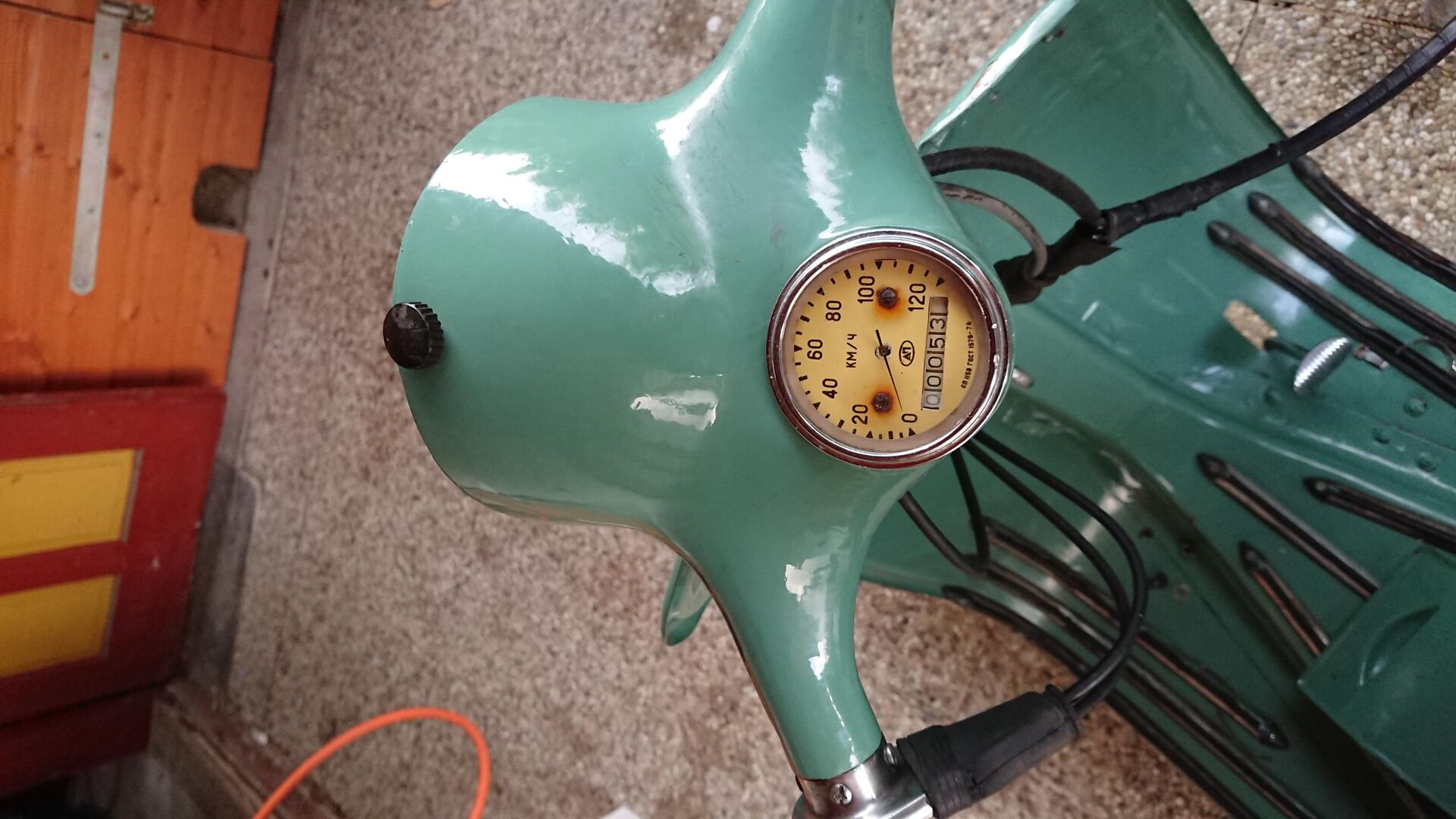 Zustand top, alle Schrauben gehen gut und leicht auf, das heißt für mich die Restaurierung ist nicht lange aus oder Stand nur, worauf der Tacho schließen würde. Motor lief auch sprang aber extrem schwer an, kaum Zündfunke. Bin auch gefahren damit schalten ging auch,