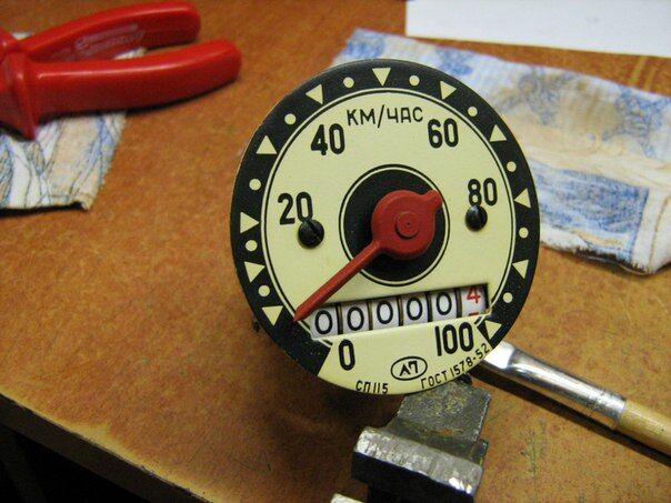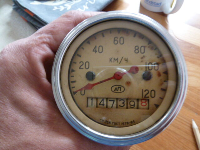 Innenleben sehr gut von den Tachos, welche an der Ural bzw. Dnepr verbaut waren bedienen.