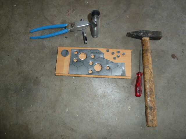 Stanzt bei der Graphitdichtung als erstes das große Loch des Ansaugrohres knapp über 22mm (Locheisen 24mm), anschließend