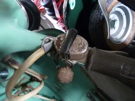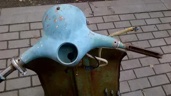 Licht wurde erfolgreich mit einem Lampe unten Lichtschalter aktiviert. Es brennen ausschließlich russische 6 Volt Birnen (noch). Gehupt wird sogar auch noch mit einer Vjatka Hupe, die gar nicht schlecht geht, nachdem man den ganzen Kontakt Rost entfernt hat. Nachdem ich Piaggio Belage eingeschliffen habe funktionieren auch die Bremsen! Die originalen Belage waren einfach nichts mehr zu aktivieren, wer weiß, was das für Material war Ural-Baumharz oder so ? Jetzt noch die Trittleisten drauf und Bremslichtschalter montiert, dann rennt das auf der Autonahn....!
