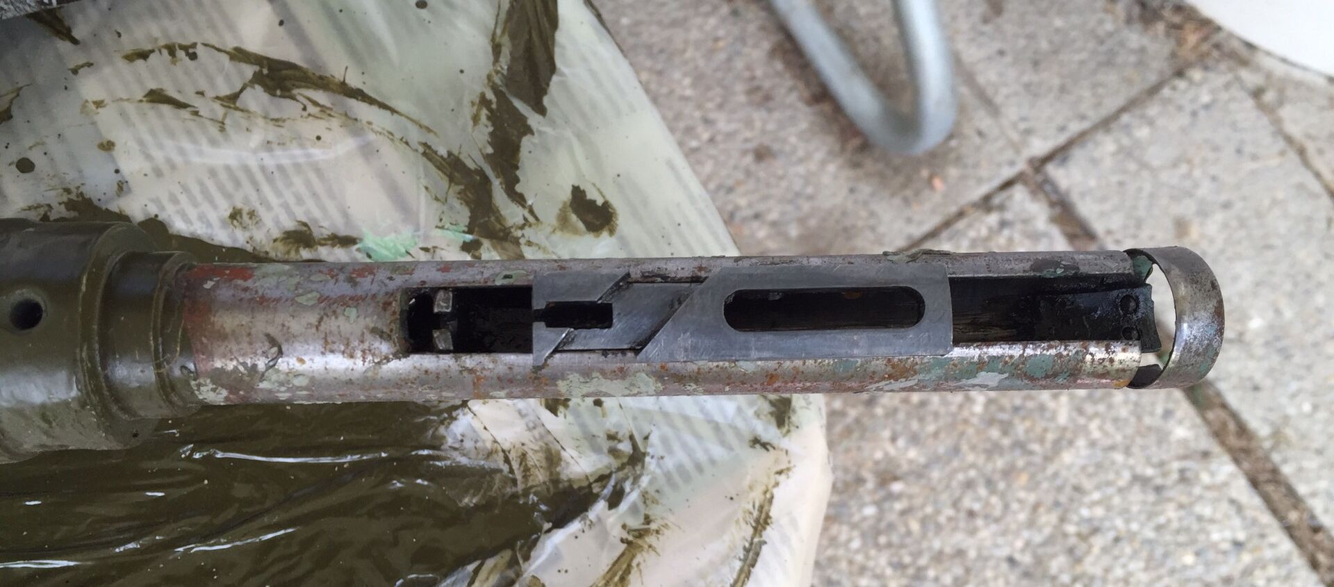 Und dann fehlt dir das äußere Gasrohr, das innen eine Wendel hat, die wiederum den Gleitstein beim Drehen raus und rein schiebt.