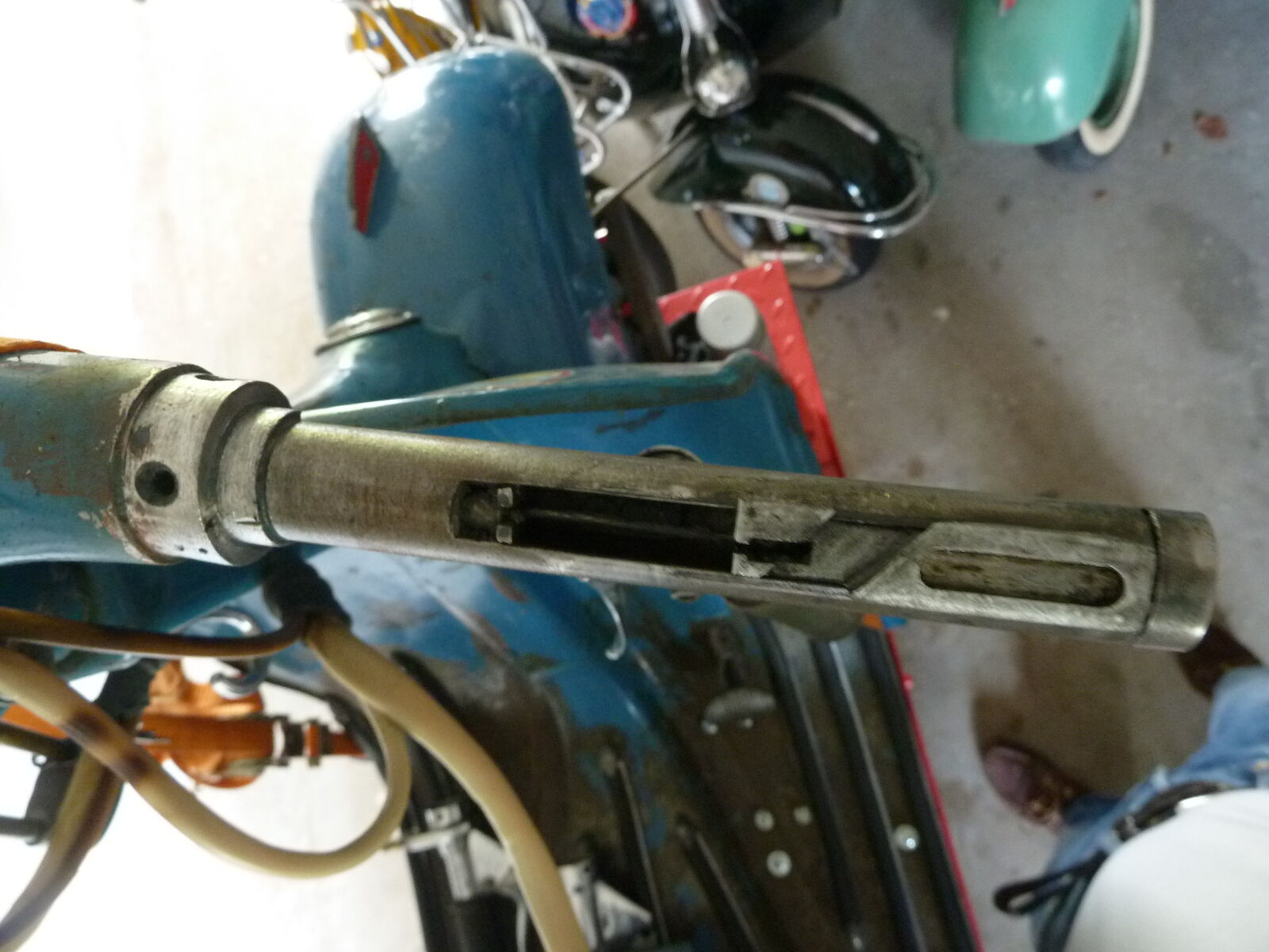 ...wegen dem Chromteil, das nicht übern Lenker geht. Das Teil hat diesen kleinen Schlitz, was für mich heisste, dass es von einer relativ frühe Variante stammt. Durch den Schlitz geht die Befestigungsschelle für den Hauptschalter. Welches Baujahr hast du denn? Die Lenker sind auch nicht alle gleich....