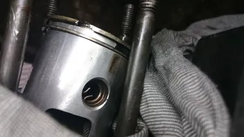 Ich habe die Kiste jetzt nochmal komplett zerlegt. Einmal nochmal richtig. Kolben zum Auslass gedreht, Zylinder sieht soweit gut aus. Kerzenbild ist auch top würde ich sagen. Der Kolben hat ein paar Schmauchspuren unterhalb der Öffnung vom Kolbenring. Zudem werde ich den Krümmer jetzt mit Kupfermuttern befestigen. Ich denke wenn es da oben raus bläst ist es auch nicht förderlich zur Kühlung.Aber was mir eben noch sorgen bereitet ist tatsächlich die ZGP. Es wird einfach zu heiß. Gut zu sehen weil es zwischen Spule und Kern heraus quillt.
