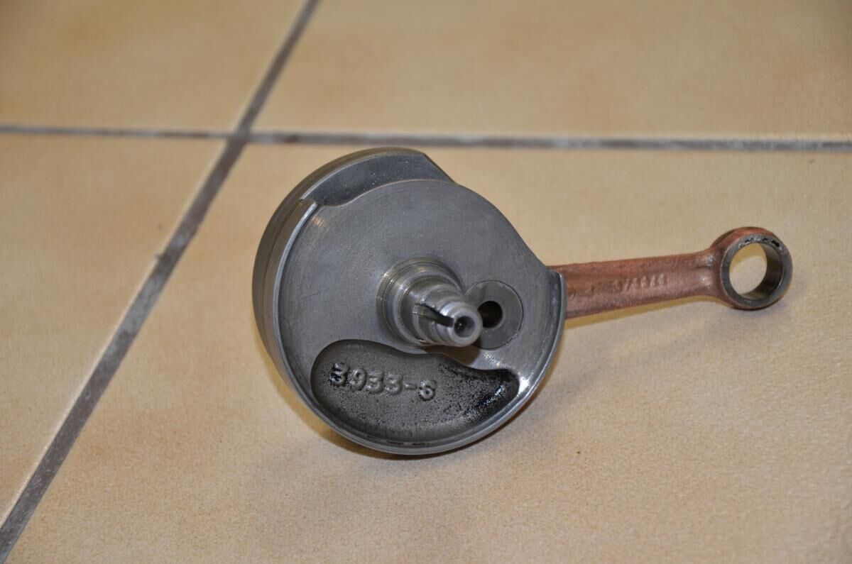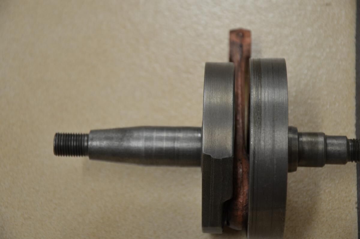 Original Piaggio HP4 Rennkurbelwelle, keine Riefen, Kratzer, etc. Lager und Pleuel sind ok, Nuten beide ok, nur das Gewinde auf der LiMa Seite braucht ein bisschen Zuneigung (siehe Fotos)