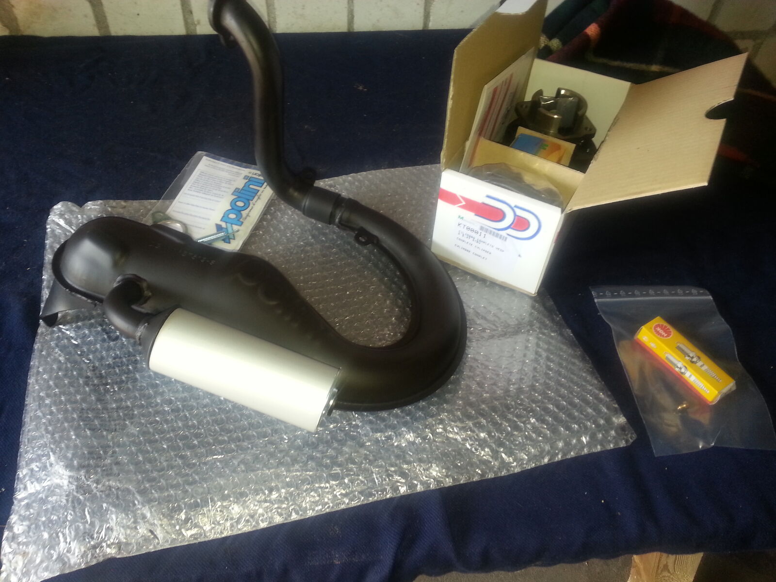 zur PK XL (angeblich) passend: einen auspuff von pollini und einen zylindersatz 75ccm von DR.
