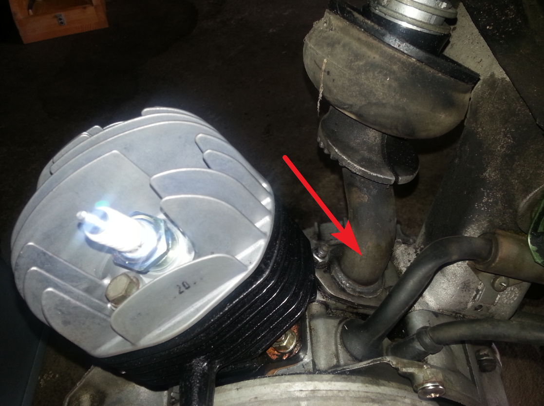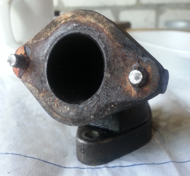war alles recht gut gelaufen - nur die total festgegammelten gewindebolzen bei diesem guß-winkelstück, das zwischen zylinder und auspuff sitzt, sind abgebrochen, sodaß ich mir erstmal ein neues bestellen mußte.