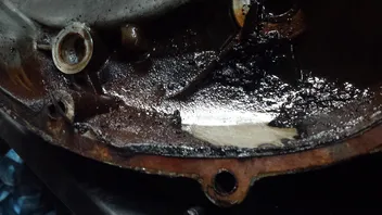 So sah es vorher aus. Und die ablagerungen im motor waren richtig hartnäckig. Ist nur eine frage der mittel und technik.