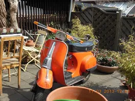 Die Vespa ist im absoluten Originalzustand mit allen Papieren und läuft einwandfrei. Jedoch verliert sie seit neustem Benzin aus dem Vergaser, was jedoch abgesehen von der Delle am vorderen Schutzblech und leichten Gebrauchsspuren das einzige Manko ist.