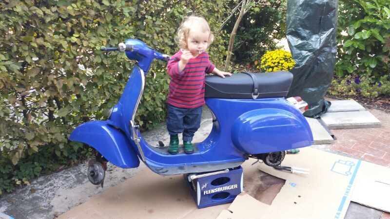 In meinem Fall kam keine davon in Frage, denn mein Roller fuhr viele Jahre mit mir zusammen auch zur See und hat mehr Seemeilen als Kilometer runter. Da der Roller auf dem Achterdeck vertaut wurde, war er somit auch Atlantik, Mittelmeer, Ost- und Nordsee ausgesetzt und das nicht nur bei schönem Wetter. Dazu natürlich Sand, Salz und anderes "Gedöns", was sonst noch so auf dem Roller landen kann. Heute bin ich mehr als dankbar für die Lösung und zusätzlich "turnt" jetzt auch gerne meine Tochter mal auf "Papa's zweitem Liebling" rum.