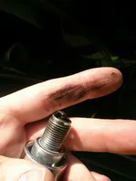 alles war wie gesagt mit dem blaurauchen verbunden. die zündkerze war nach dem ziehen schwarz, nass und mit öl bedeckt.