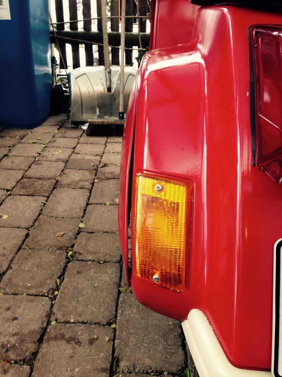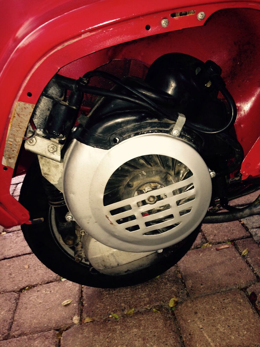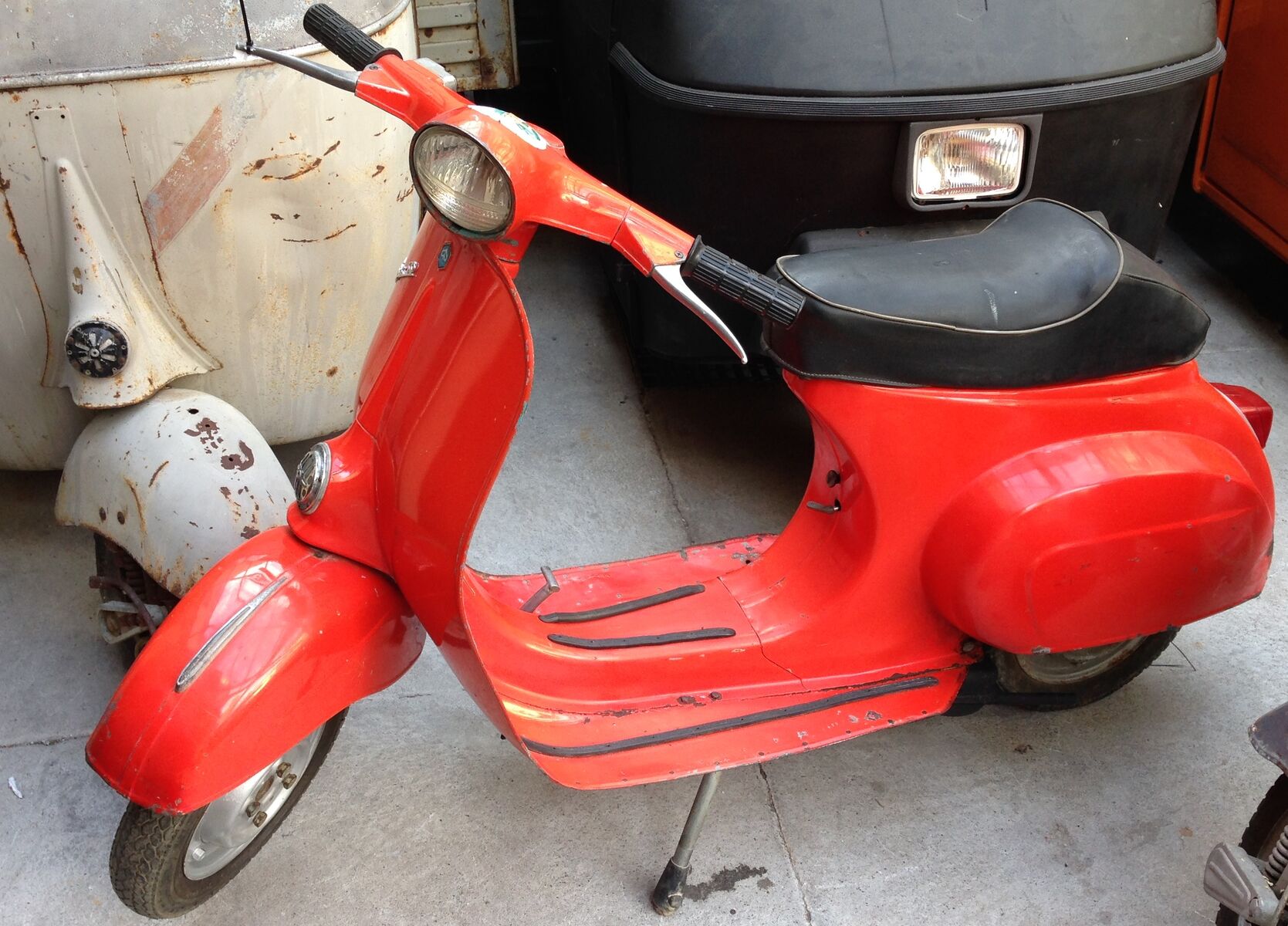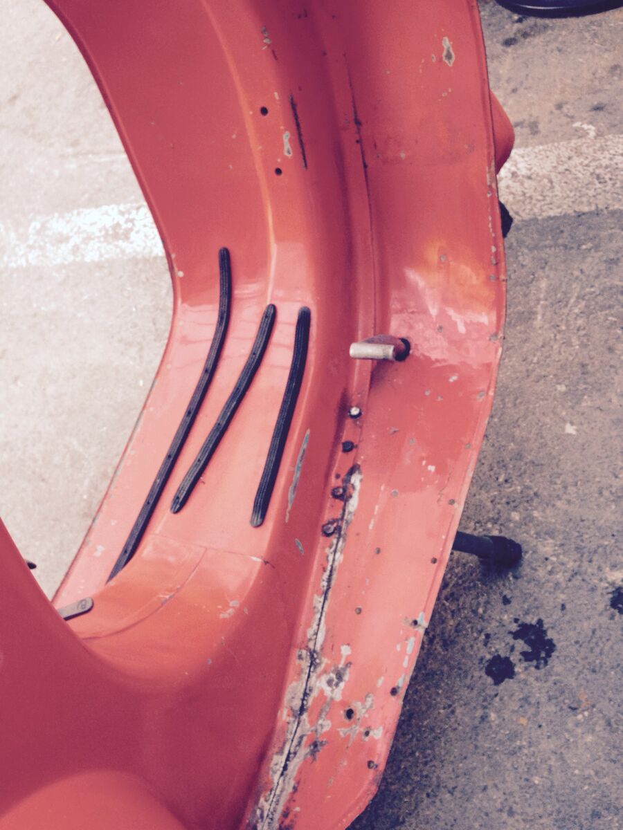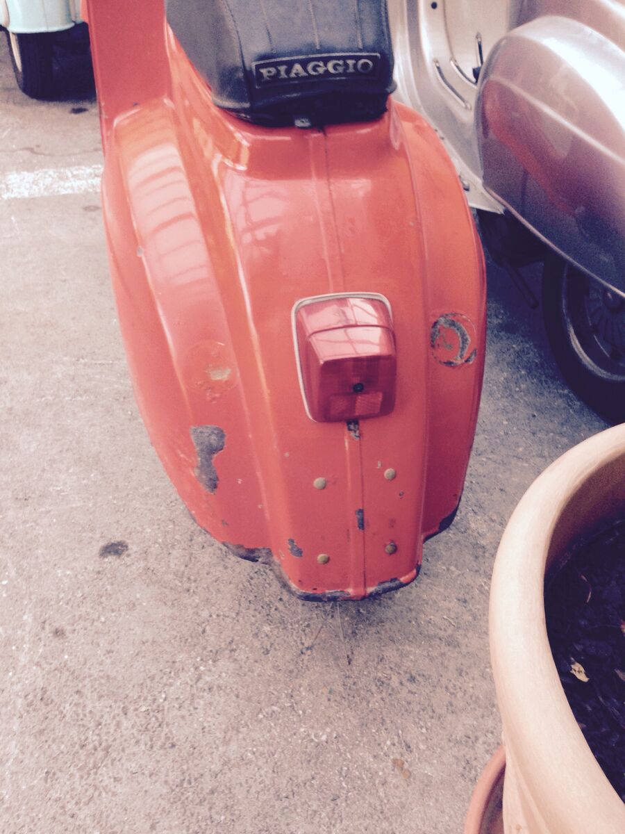 Bei einem Händler fand ich nun eine V50 (S/N/L/R weiß ich leider selbst nicht) in Rot, BJ 71, mit orig. italienischen Papieren. Der Lack soll der Originallack sein, hat entsprechend ein paar Schrammen, strahlt aber trotzdem noch. Sprang bei kurzer Vorführung bei erstem Kick an. Hat würde ich sagen keinen Rost (zumindest nicht an kritischen Stellen), das Trittblech ist etwas abgenutzt und hier müssten neue Trittgummis ran. Soweit ich das überhaupt als Einsteiger beurteilen kann, sehen für mich auch die Bremsen etc. gut aus. Das rechte Trittblech liegt an einer Stelle nicht mehr ganz auf, das würde mir der Händler per Punktschweiß noch etwas befestigen (für mich wäre das erstmal voll okay). Würde dann selbst noch Klarlack auftragen.