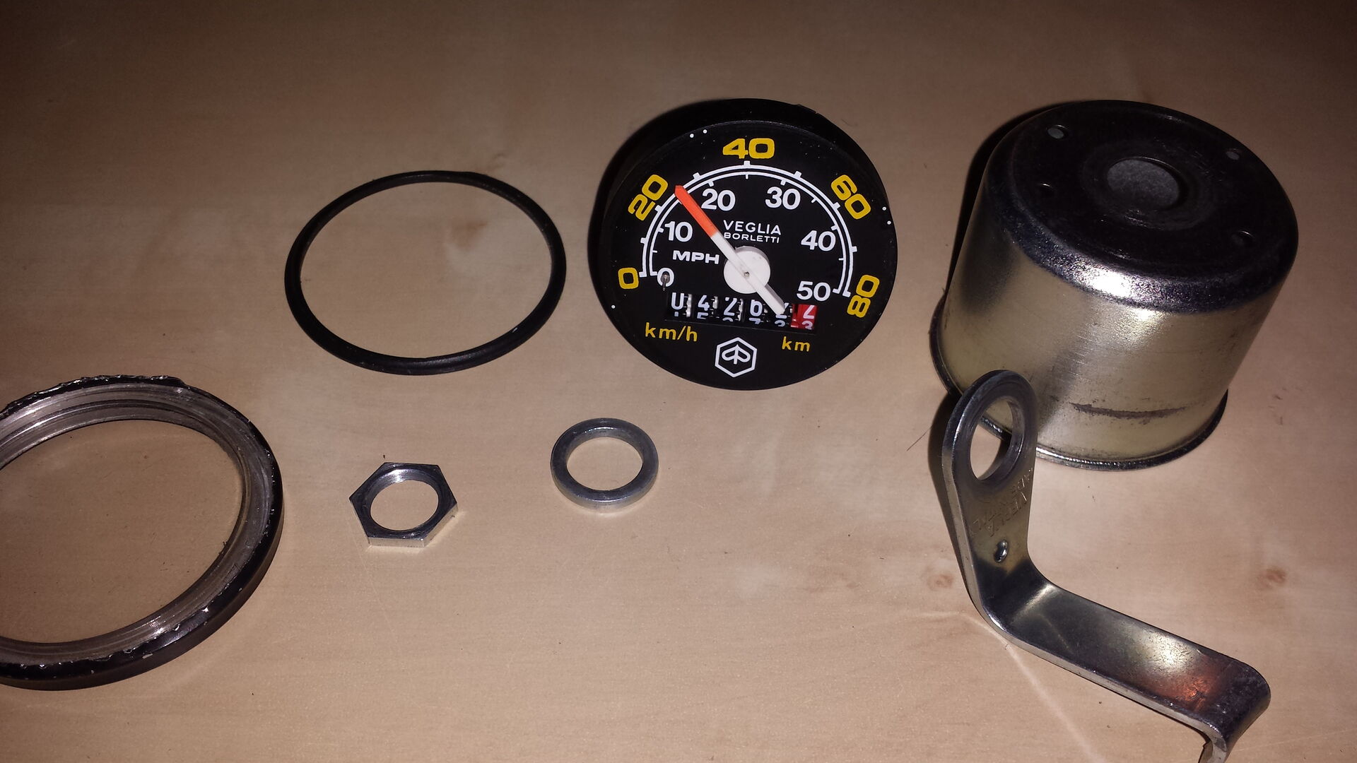 Für diverse Arbeiten, wie zB. Nachrüstung eines Bremslichts und Schnarre 6V, neues Rücklicht und Scheinwerfer, Auswechslung der Kupplungszüge, Verlegung neuer Kabel, habe ich halt den Tacho (Veglia Borletti bis 80 km/h) entfernt.