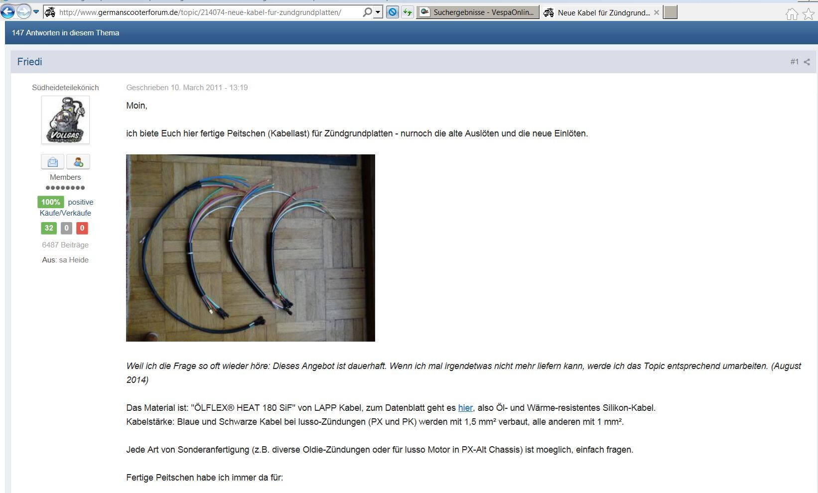 in der Lima werden Silikonkabel verbaut, und das aus gutem Grund. Du kannst aber auch jedes andere Kabel verwenden, wunder dich aber nicht wen die das nicht aushalten. Piaggio hat bei ALLEN Modellen, bis zur PK von 1991 Silikonkabel verbaut. Nicht weil sie das teure Zeug noch rumliegen hatten, sondern wel normale Kabel recht schnell den Geist aufgegeben hatten.