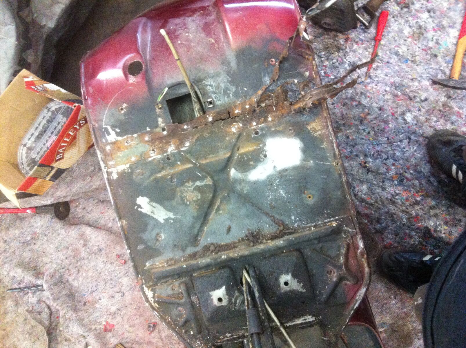 Letzten Samstag hab ich dann begonnen die kleine zu zerlegen und die Unterboden Streben, die verrottet waren zu entfernen. Soweit erstmal, anbei wie immer ein paar Bilder ![]()