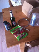 habe 4x 0,33 astra bier gefunden sowie den holz schlüsselanhänger der hier schon mal unter den baum gewandert ist.