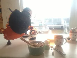 ich werd noch nen Tisch oder passenden Sockel herschleifen, damit das Ding einen gebührenden Platz hier bekommt. Heut morgen zum Frühstück durfte es auf dem Esstisch bleiben