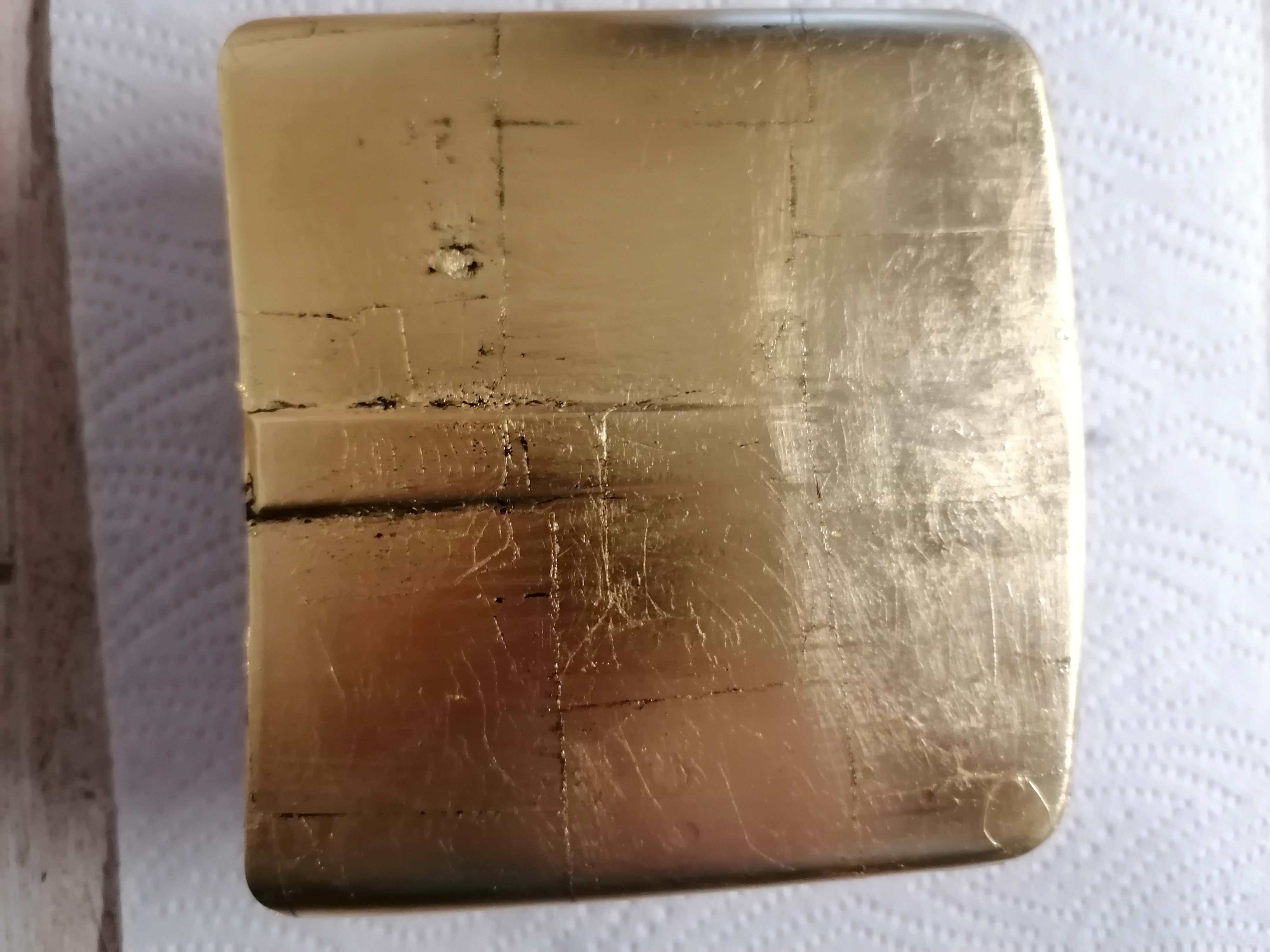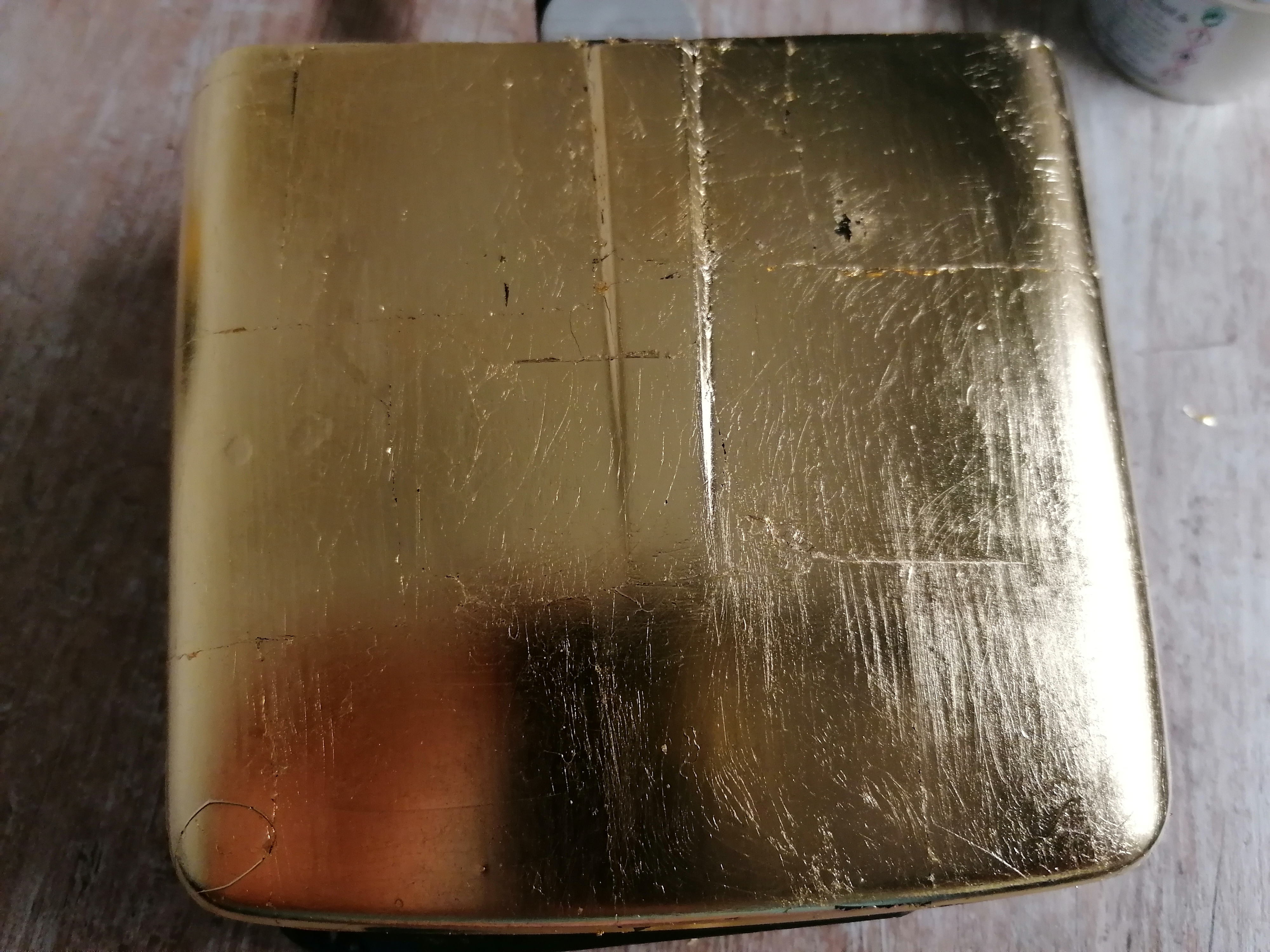 Leider reagierte das schwarz mit der Versieglung. An den Rändern der Goldblättchen sind wieder Fugen entstanden