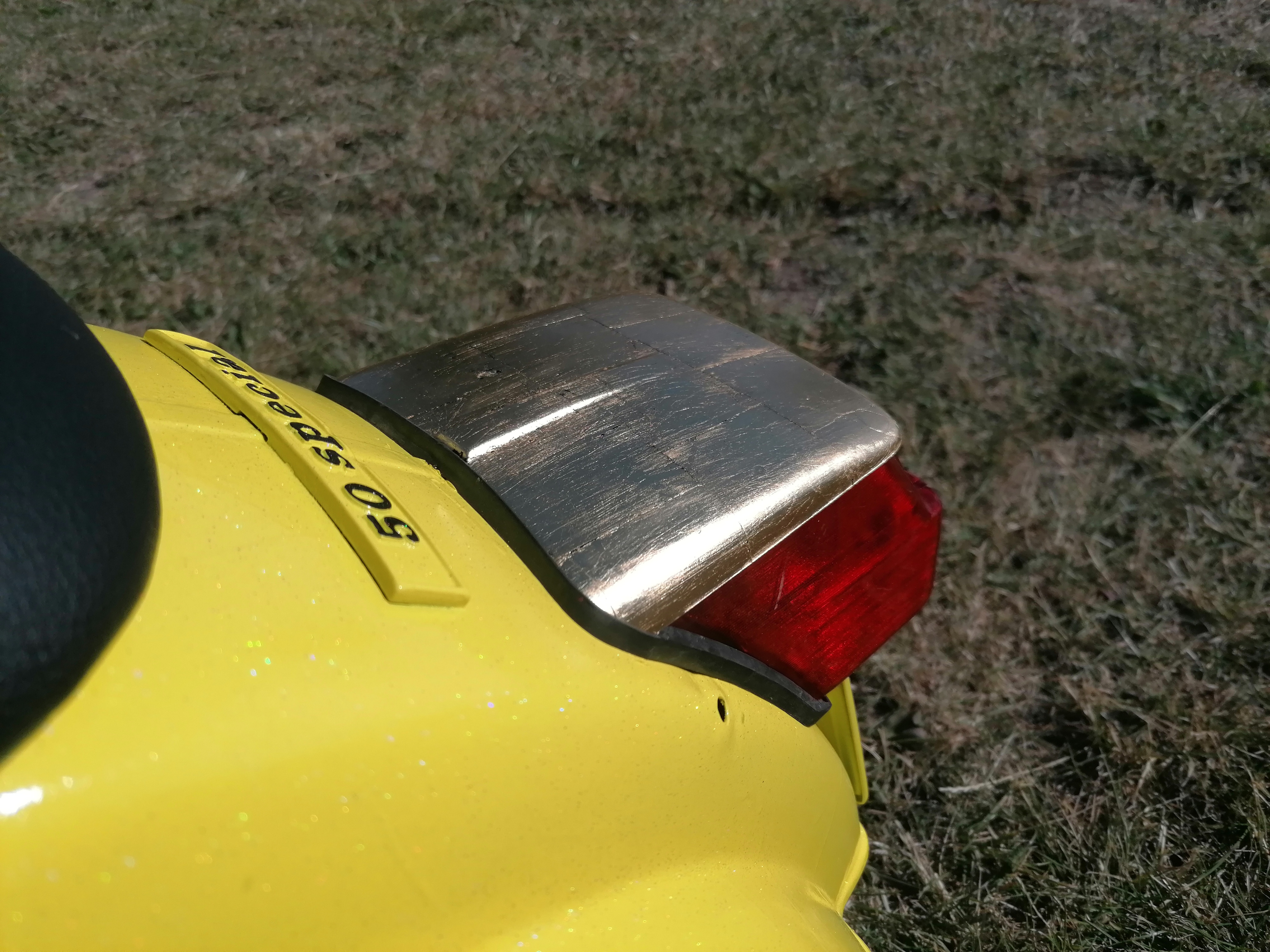 Ich habe den Arsch der Special am Samstag gelb gelackt. Da soll ja noch das Rally Rücklicht dran. Aber das Dach in schwatt ,danke Scharnhorst , ist ja etwas zu langweilig. Wollte es dann abends Zuhause abkleben und bunt lacken. Alles dafür eingepackt damit ich das Zuhause feddich machen kann. Abends im Internet was gesucht (Ersatzteile für'n G)