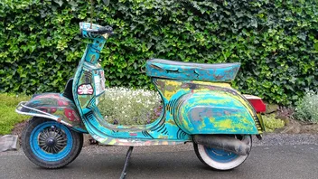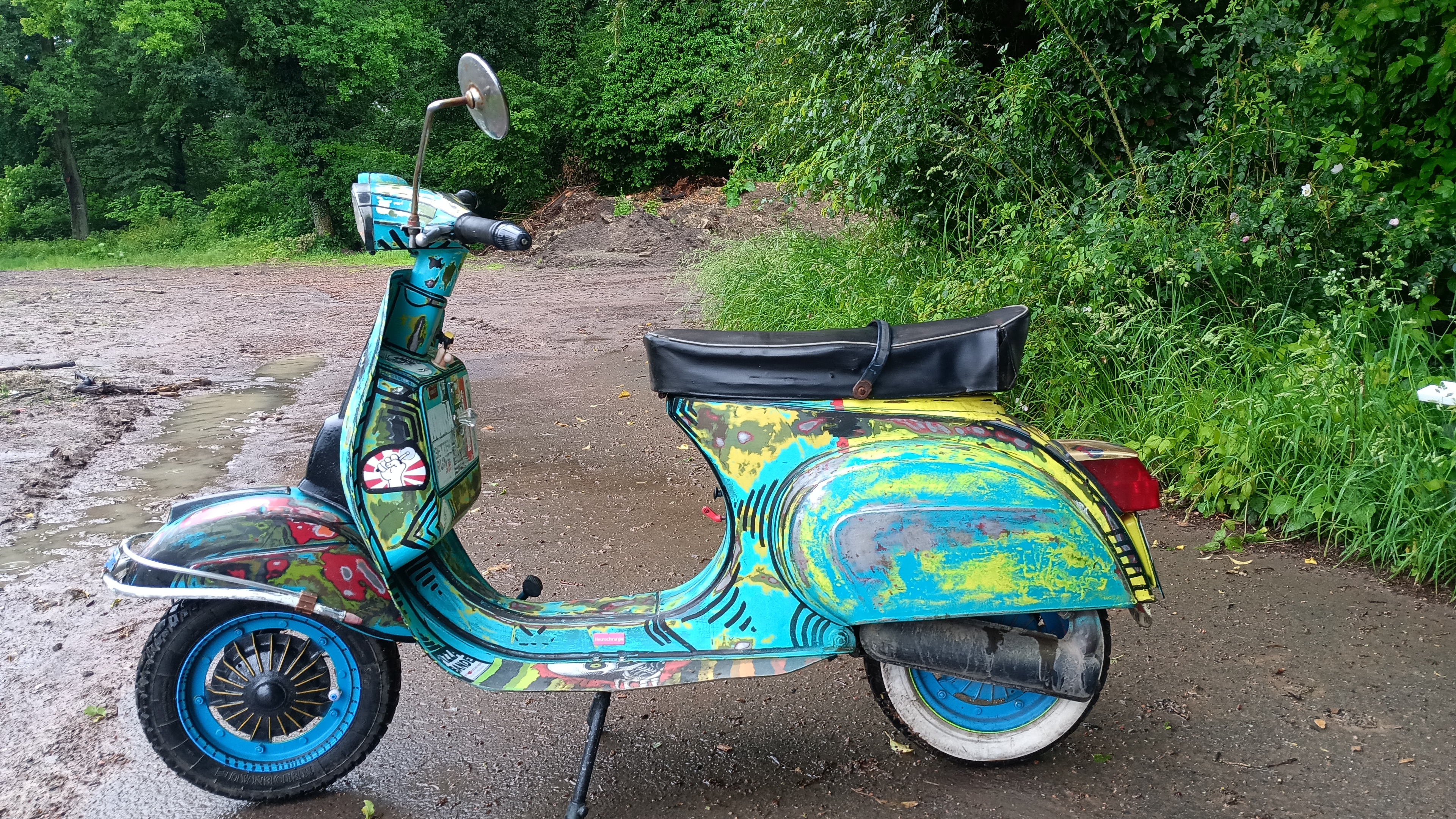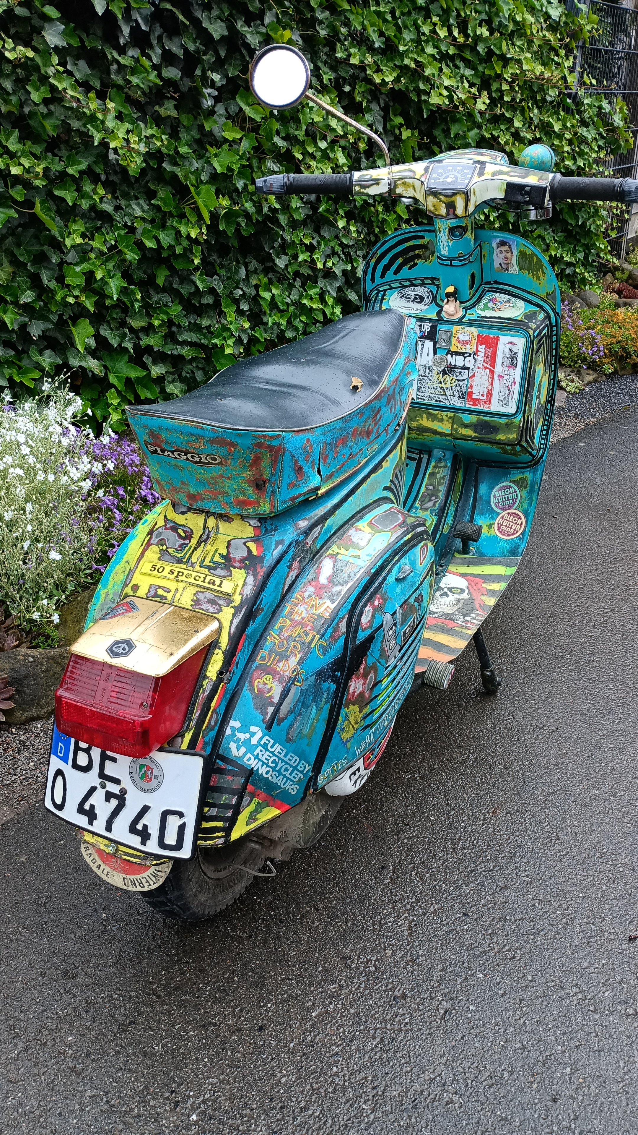 bei dem Moped würde auch was selbstgebautes passen.... Holz-Blech-Leder-