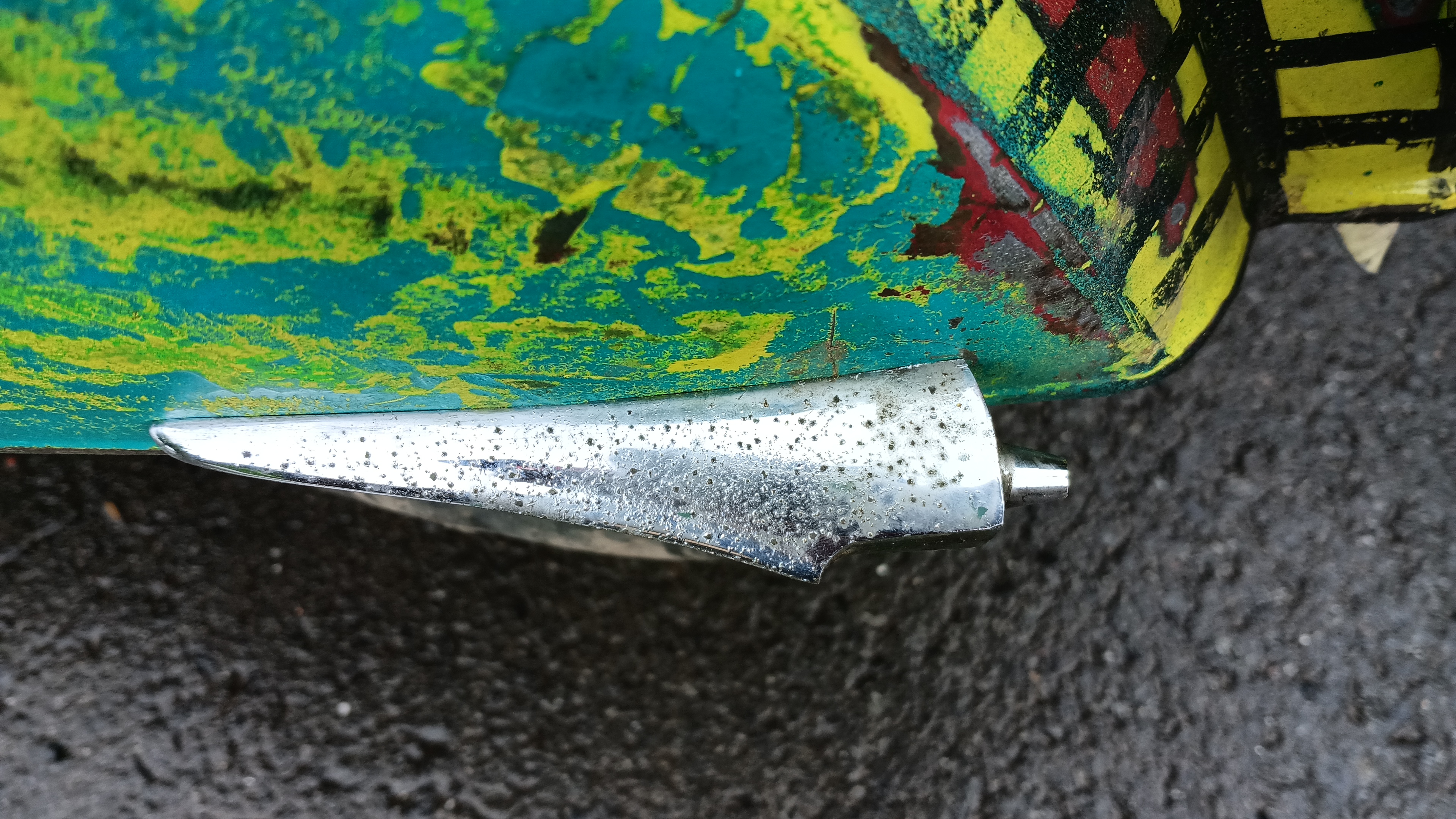 Habe mal ne Finne dran geschraubt. Ich finde die Spitze der Finne müsste etwas tiefer. Quasi bis auf die Sicke.