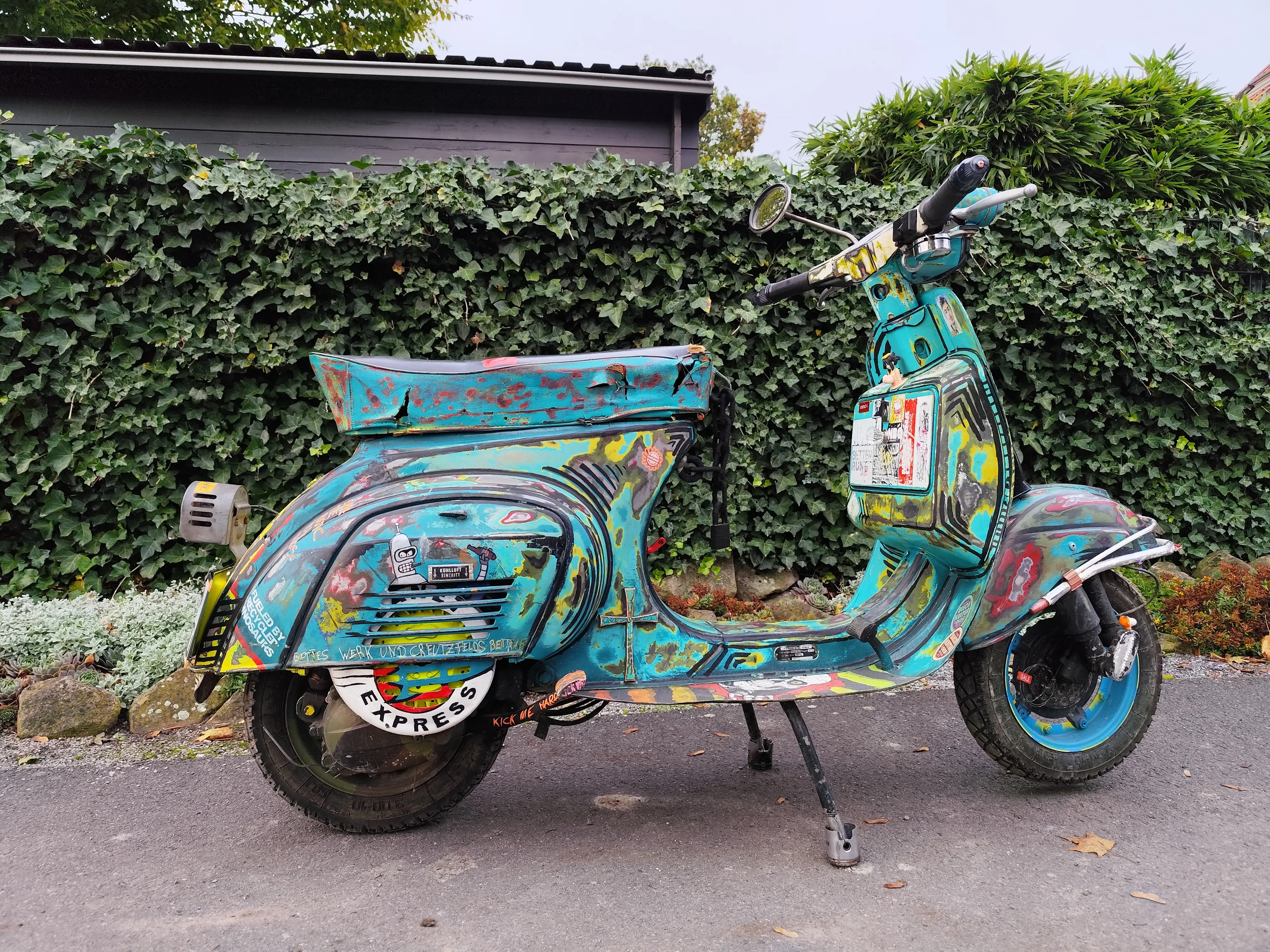 Ich habe von vespaccio u.a ein altes ranziges Repro Rücklicht bekommen. War am überlegen wie ich das optisch herrichten für die Kirmesbude. Als ich die Tage auf nen Dach hockte kam die Erleuchtung. Wollte es erst einseitig farblich anpassen und die andere Seite mit Blattgold überziehen. Jetzt habe ich was besseres gefunden. Dachdeckerblei...