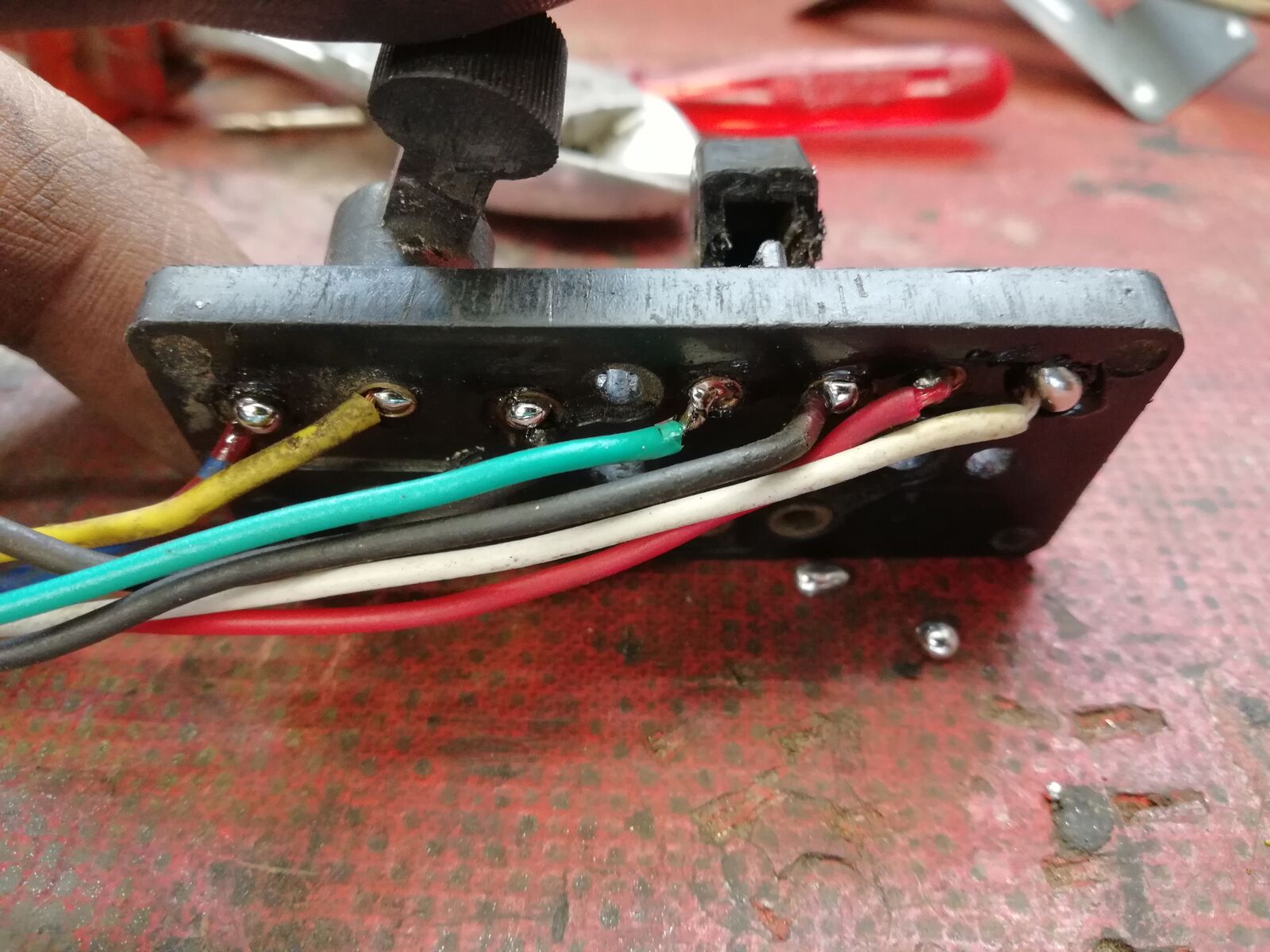 Blinkschalter wird auch neu verdrahtet. Nen neuen kaufe ich nicht. Die Kabelreste werden ausgebohrt und die neuen verlötet.