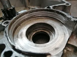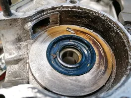Nachdem es mir letzten Sonntag nach nur 290 gefahrenen km mit der Special den Motor etwas zerlegt hat weiß ich zumindest schonmal woher das Stückchen Metall kam. Durch den Einlass. Da liegt auch noch etwas. Erst hat die Kurbelwelle wohl nur etwas dran geknabbert und es in kleine Stückchen geschreddert die dann auch über die überströmer in den Brennraum gelangt sind und dort Kopf und Kolben getötet haben. Dann hat der letzte dicke Rest die Kurbelwelle geschrottet. Und den Drehschieber.