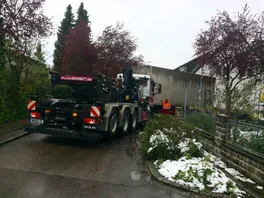 Jetzt sind die Jungs weg und suchen nach einer Alternative. Die wollen wohl umladen auf einen 2-Achser. Ob das heute noch was wird, mal schauen