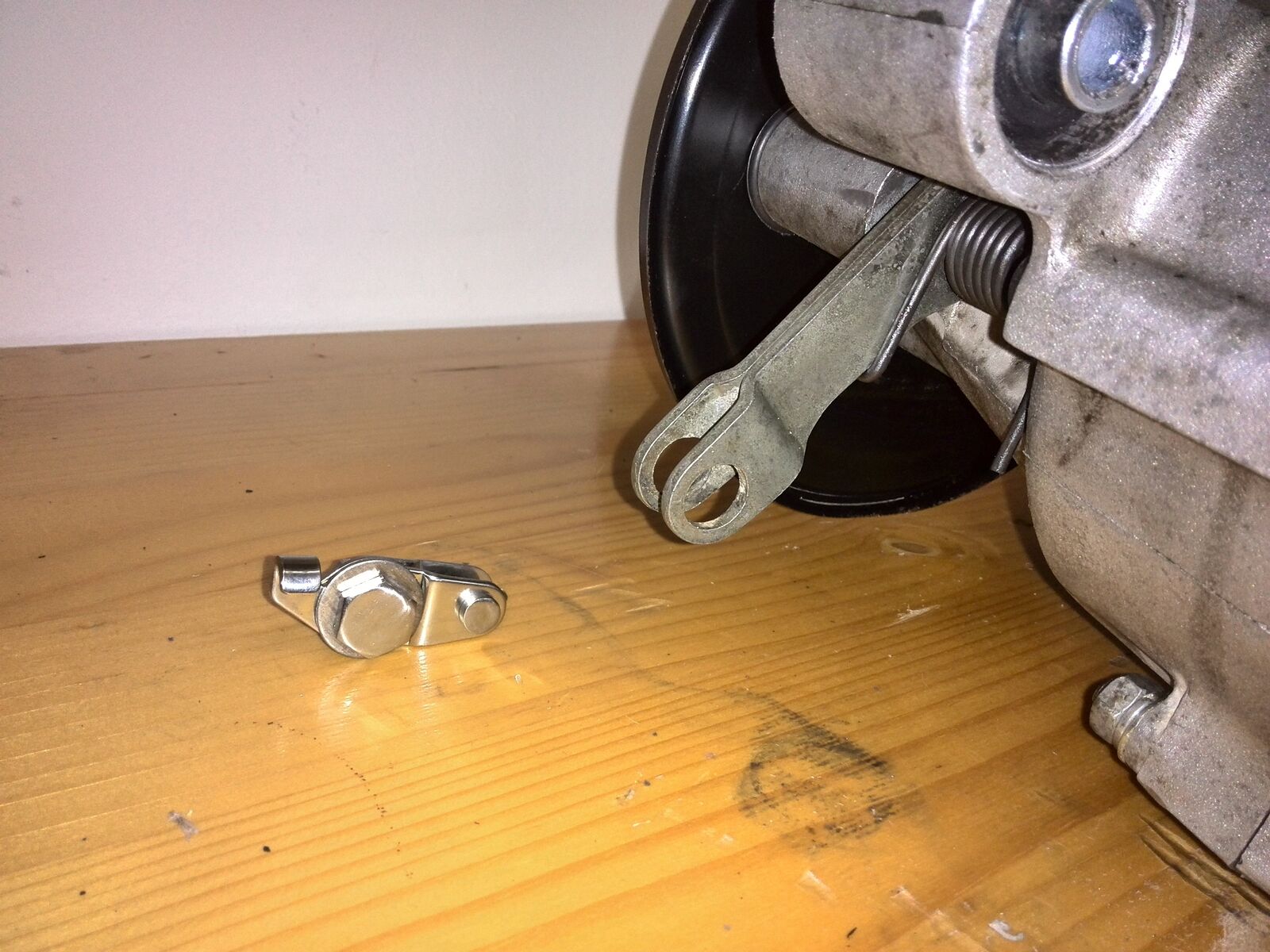 Also der Hebel war dran. Du meinst wohl das Loch auf dem Bild das hat noch ein Gewinde drin. Müsste man schauen ob es durch passt. Etwas in der Art müsste ja dann montiert gewesen sein. In den Shops gibt es auch eine Schraube die sich auf einen normalen Zug aufschrauben lässt. Keine Ahnung was nun besser ist.