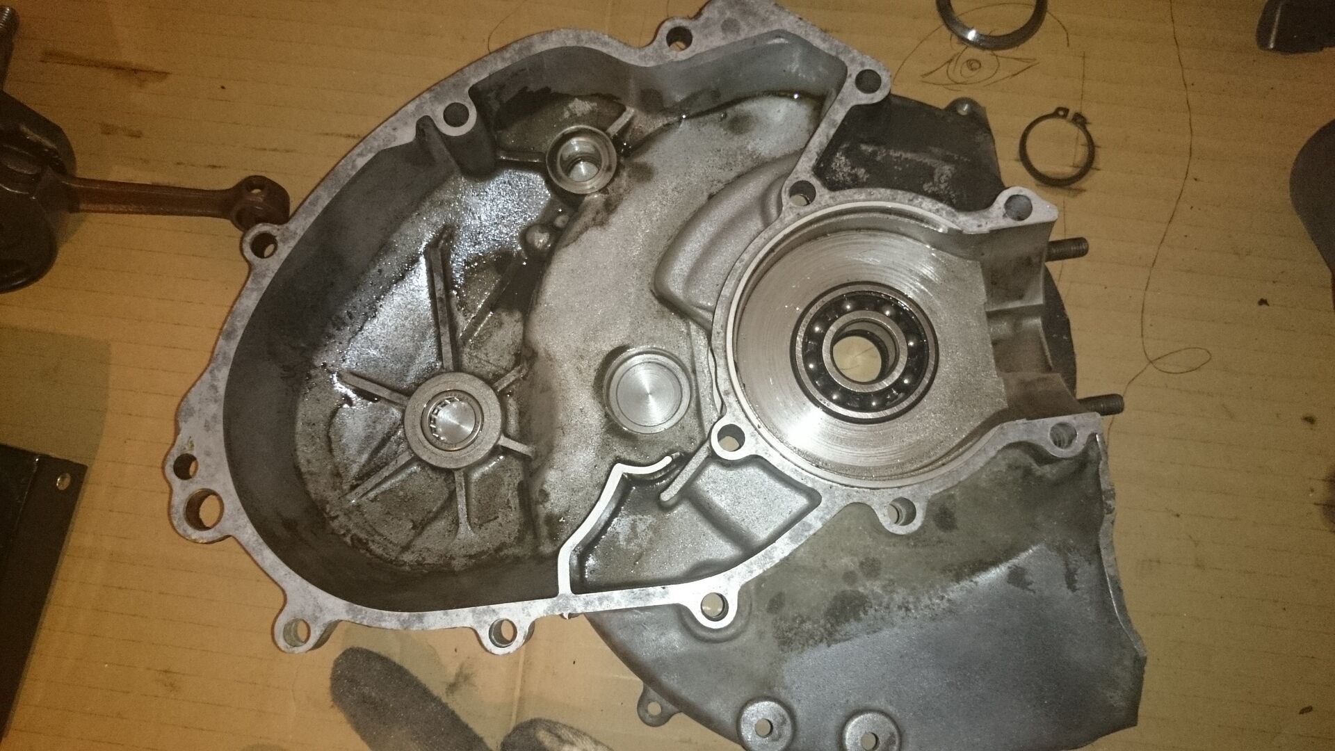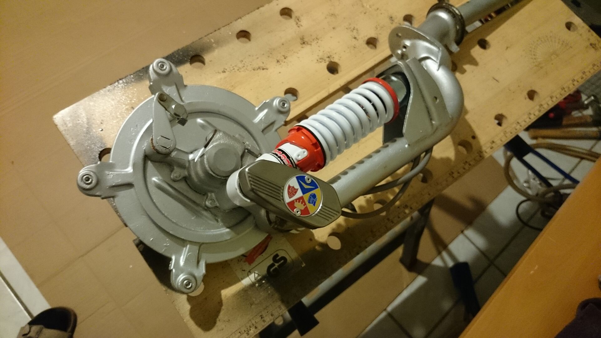 Da ich in der Zwischenzeit nicht untätig sein wollte habe ich schonmal die Gabel überholt.Die Lager wurden gewechselt und die Beläge erneuert.