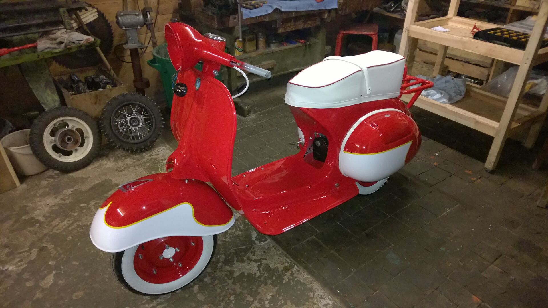 Paintwork with sandblasting was about 1000€. This restored scooter is for sale and will cost 3500€. If anyone wants it's own collections, i can help to transport it in the middle of Europe. This is not a problem.
