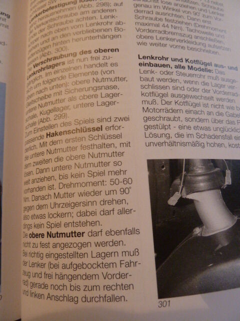 Vespa Motorroller ans Herz legen (um die € 15). Auf Seite 125 wird u.a. erklärt wie das Lenkrohrlager und Spiel eingestellt