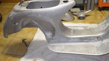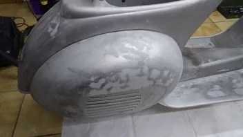 Da ich mich jedoch mit der Farbe (metallic blau) der Vespa nicht so recht anfreunden konnte und auch wollte, sollte sie neu lackiert werden - da sie ja offensichtlich sandgestrahlt worden war fiel das Rückrüsten auf O-Lack aus.