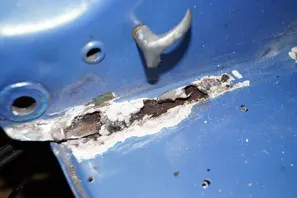 Jedoch kommt es im Leben immer anderst als man denkt, wie aus den Bildern ersichtlich kam unter dem "schönen" blauen Lack pötzlich eine Unmenge an Rost und Spachtelmasse zum Vorschein.