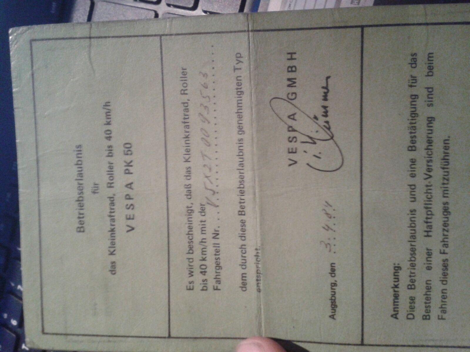 Ich bin 16 und dabei meinen Führerschein zu machen um endlich Vespa fahren zu dürfen, dazu habe ich mir ein Vespa PK 50 Bj. 1984 gekauft und sie mittlerweile mittels Vergaserreinigung mit Tipps aus diesem Forum und anderen Maßnahmen zum laufen gebracht.