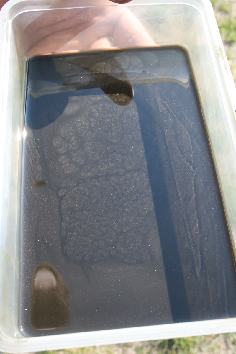 Jetzt haben wir schnell öl reingefüllt, sind drei km gefahren und haben den Dreck ausgespült und neues Öl eingefüllt. Allerdings ist das Getriebeöl sehr, sehr angereichert mit Metallspänen, glitzerte regelrecht in der Sonne!