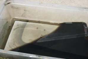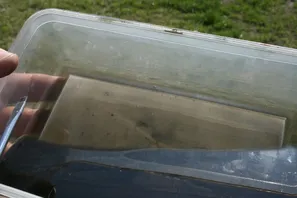 Jetzt haben wir schnell öl reingefüllt, sind drei km gefahren und haben den Dreck ausgespült und neues Öl eingefüllt. Allerdings ist das Getriebeöl sehr, sehr angereichert mit Metallspänen, glitzerte regelrecht in der Sonne!
