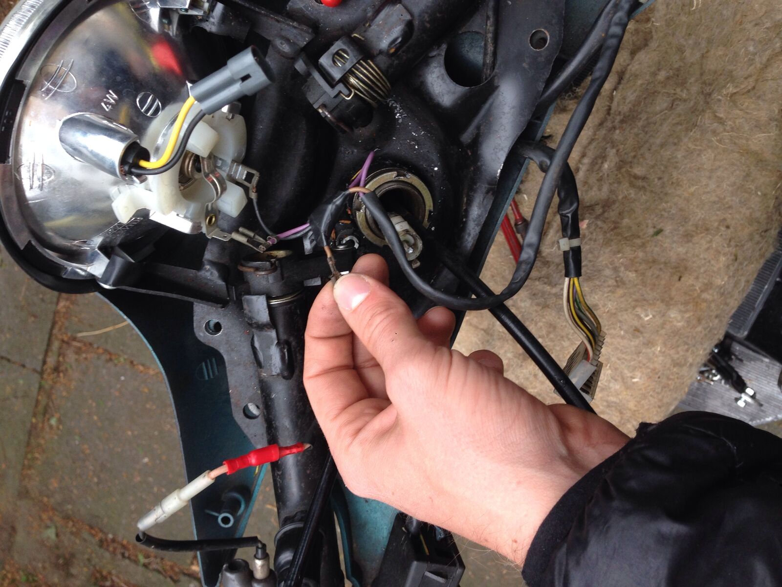 Es kommen 3 Kabel aus einem Strang vom Start,Licht und Hupschalter.