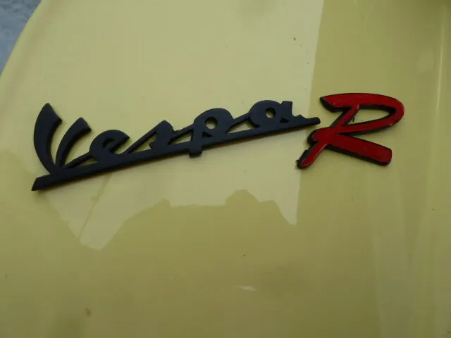 Da es ja eine "Vespa R " war dacht ich mir dieses "R" Zeichen irgendwie zu basteln...Das "R" gibts ja in verschiedenen Automodellen..am ersten Eingefallen Golf "R"..dch dieses "R" war Schriftformmässig nicht so der brüller zur filigranen Vespaschrift..also war NIX.
