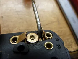 Die beiden Hupenkontkte hochgebogen!!...und dann INNEN da wo der Bolzen für Hupe ist Kontakte mit Schraubenzieher weggebogen so das da kein Kontakt mehr ist siehe Bild!!