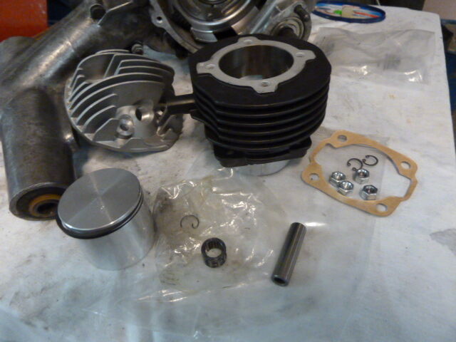 Dichtung drauf..und nun der Heikle Teil des Baus..Zylindry drauf...Man man..bei nem, Org Kolben is ja nicht so schwierig mit Kolbenringen,oder hab ich wohl zu kurze Wurstfinger(