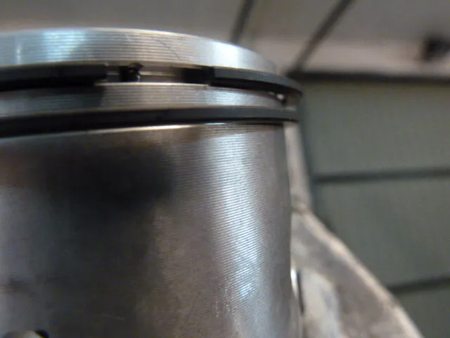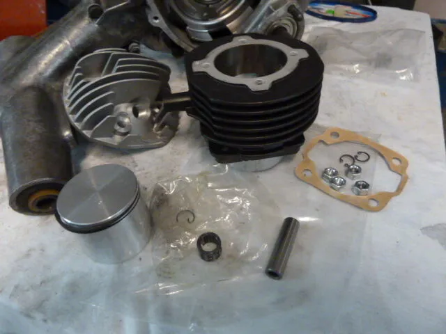 Dichtung drauf..und nun der Heikle Teil des Baus..Zylindry drauf...Man man..bei nem, Org Kolben is ja nicht so schwierig mit Kolbenringen,oder hab ich wohl zu kurze Wurstfinger(