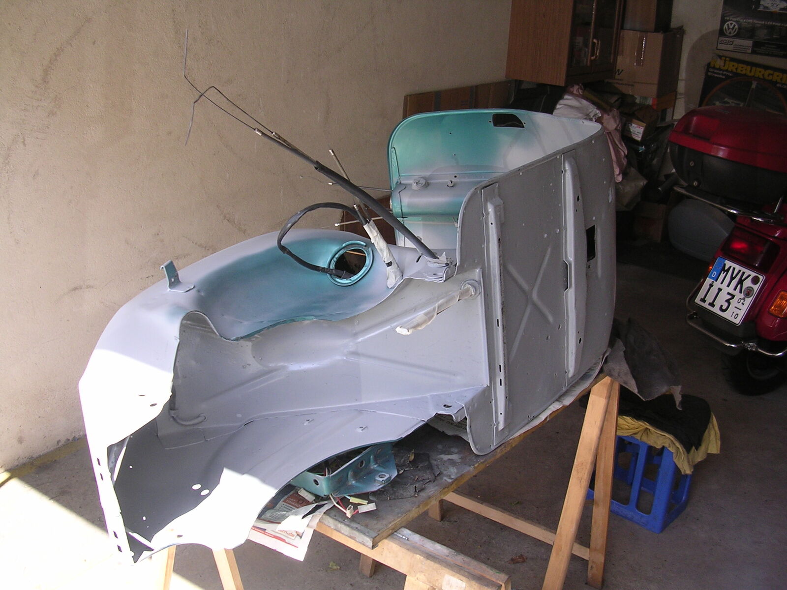 Natürlich habe ich an anderer Ecke noch einen Bekannten gehabt der es mir Lackieren lassen konnte. Jetzt haben dir dort in der Lackiererei den Motorraum bzw. den hinteren Radkasten NICHT mitlackiert (wieso auch immer) Gestrahlt wurde dort allerdings.