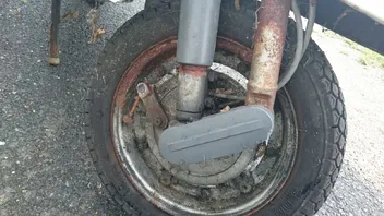 Bei der Gelegenheit habe ich Bilder gemacht um den Zustand zu dokumentieren. Die Vespa stand unter einen Vordach, das Vorderrad scheinbar weniger geschützt.