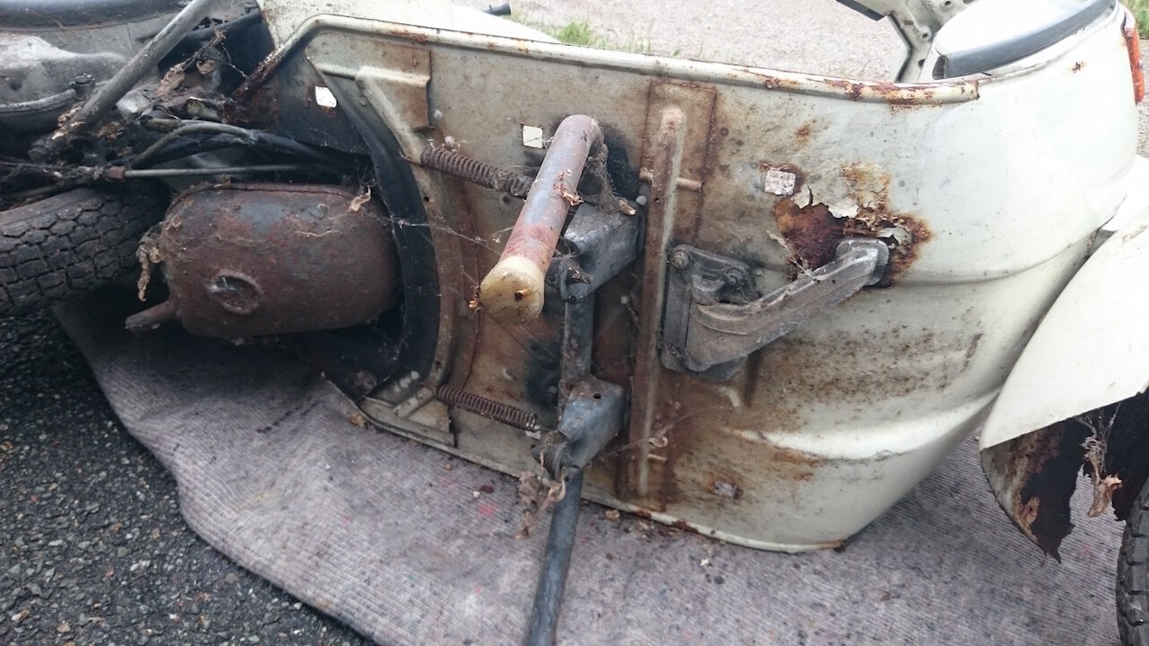 Bei der Gelegenheit habe ich Bilder gemacht um den Zustand zu dokumentieren. Die Vespa stand unter einen Vordach, das Vorderrad scheinbar weniger geschützt.