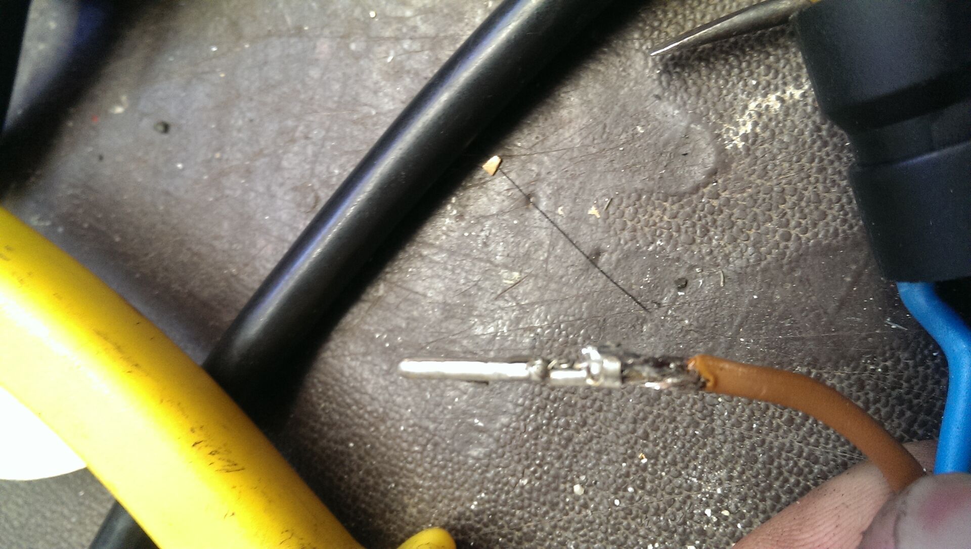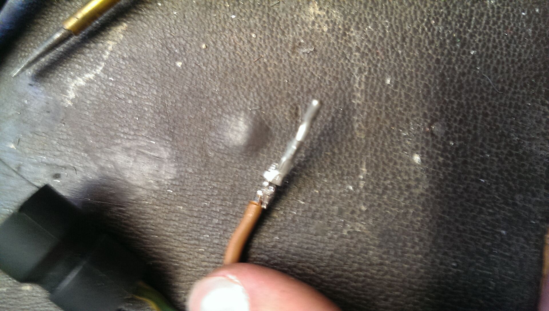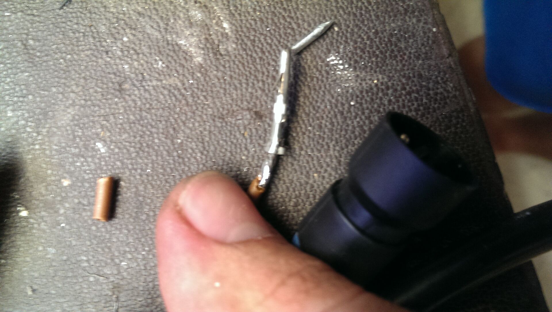 • Die Kabel kann man aus dem Verbindungsstecker rausnehmen. Vorne auf den Kabel ist jeweils eine Metallhülse die mit 1-2 kleinen Sperrhaken versehen sind. Die vorsichtig reinbiegen und dann kann man das jeweilige Kabel rausziehen.