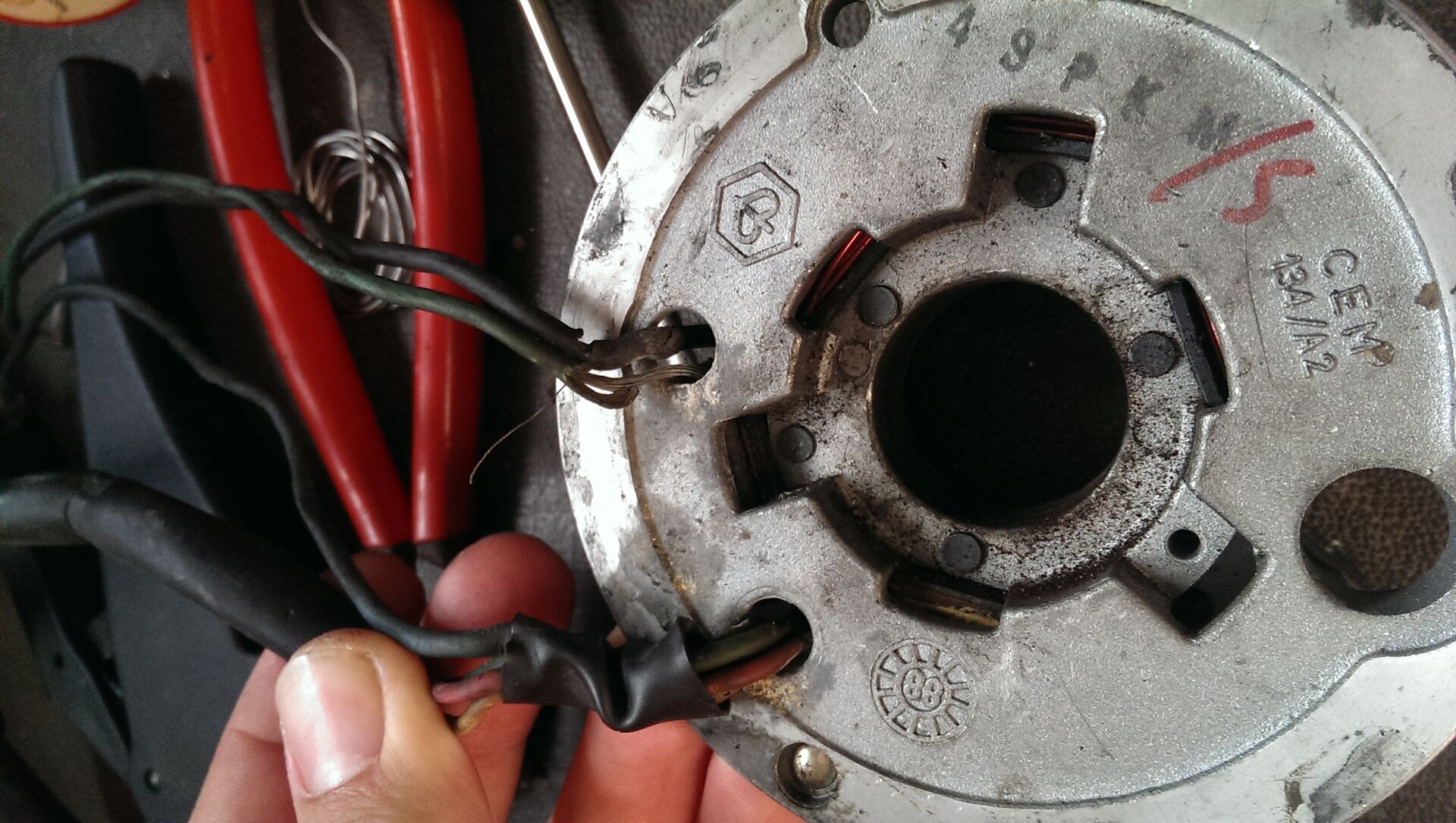Das einzige was mir aufgefallen ist, ist dass die Isolierung von 2 Kabeln an der Grundplatte abwahr, die ist vermutlich dem Zahn der Zeit zum Opfer gefallen... An der Durchführung durch die Grundplaate war auch schon ein bisschen weißes Zeug, vermute das ist eine Art Elektrolyt Korrosion, aber Ich bin kein Chemiker.